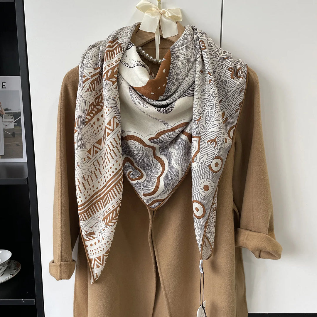 What truly sets this scarf apart is its luxurious material and unique design. The combination of silk and cashmere not only provides a sumptuous feel against your skin but also ensures durability. The intricate print adds personality to your outfit, making you stand out in any crowd. This scarf is more than just an accessory; it’s an expression of your personal style. With its multifunctionality, you can style it in various ways, making it a versatile addition to any wardrobe.