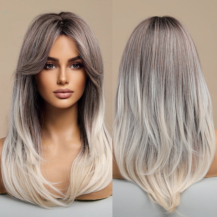 Gradient Gold Black Brown Mid-length Straight Hair Wig