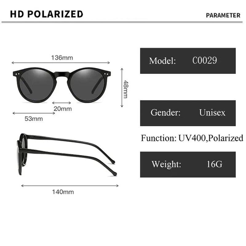 Our sunglasses are not just a fashion statement; they're a shield against the harmful UV rays, thanks to their UV400 protection. The polarized lenses reduce glare, enhance contrast, and maintain true color perception, making them perfect for driving or engaging in outdoor sports. With a stylish round frame and a choice of dynamic colors, they complement any face shape and outfit.