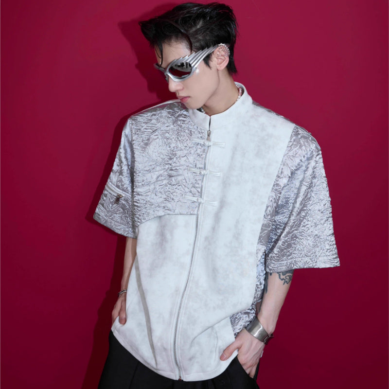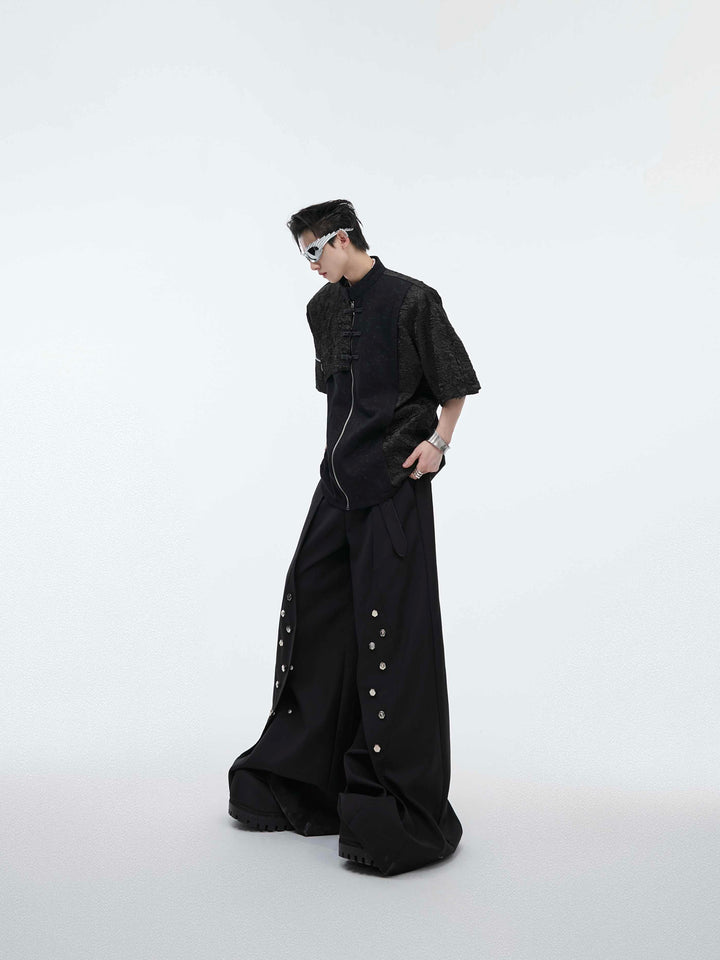 Buckle Design Sense Padded Shoulder Short Sleeve Loose T-shirt