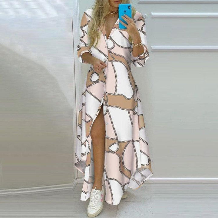 Button Fashion Print Long Sleeve Shirt Sexy Dress Women