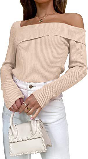 European And American Autumn Leisure Long-sleeved Slim Off-shoulder Knitted Sweater Pullover Top