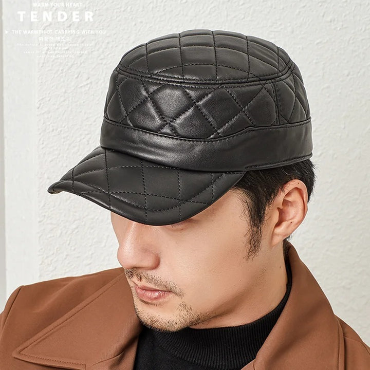 First Layer Sheepskin Hat Men's Rhombus Dome Peaked Cap