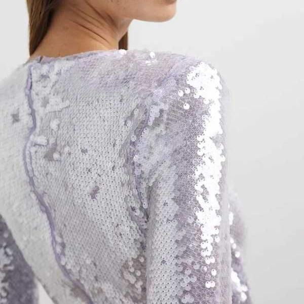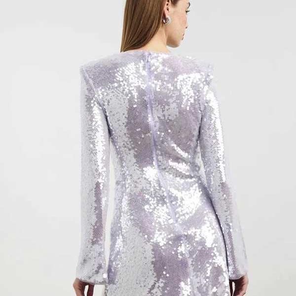 The enchanting blend of purple sequins on a slim-fit cut-out design sets this dress apart. It's not just a piece of clothing; it's a fashion statement. The drawstring bandage and long sleeves add a unique touch of elegance, ensuring you look nothing less than spectacular. Its comfortable fabric and stunning design make it a perfect blend of style and comfort, ensuring you feel as good as you look.