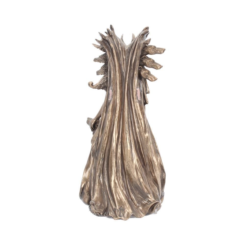 Note: Hecat is a goddess in ancient Greek religion and mythology Most often associated with knowledge of intersections, entrances, light, magic, witchcraft, herbs, and poisonous plants, ghosts, necromancy, and witchcraft. Here, she is depicted as a strange creature holding a torch, with her dog next to her.