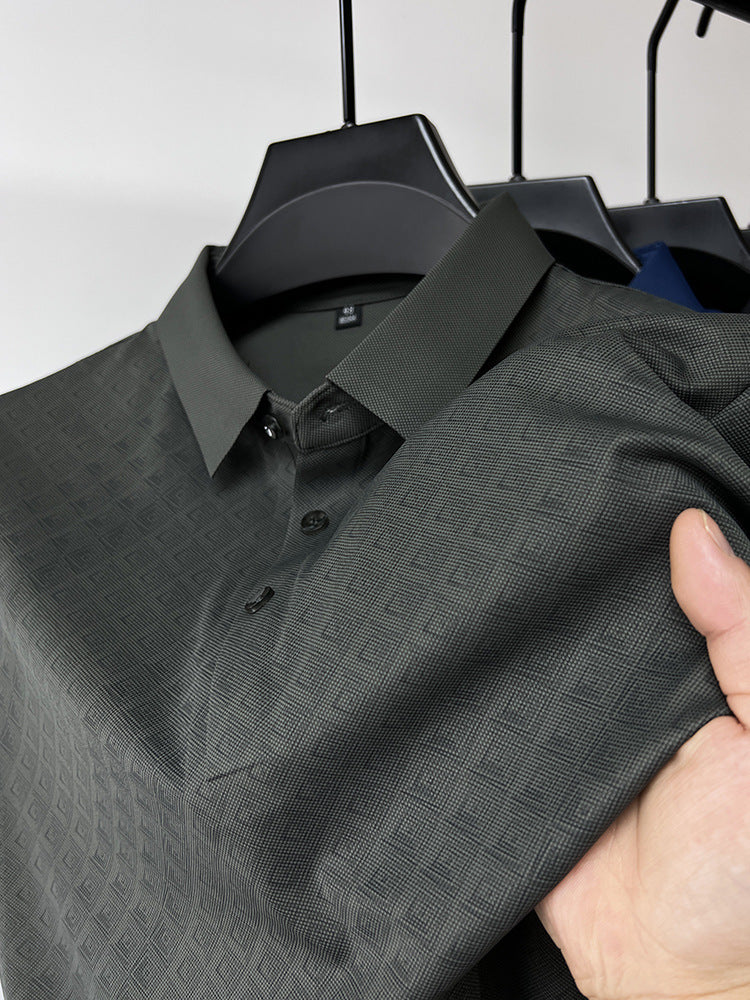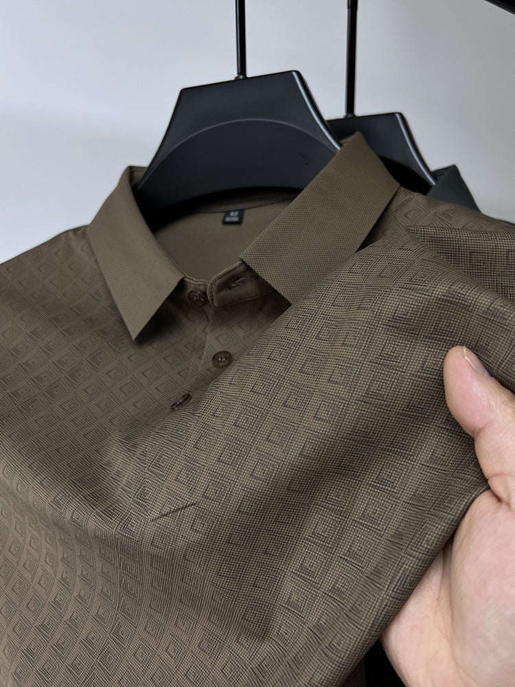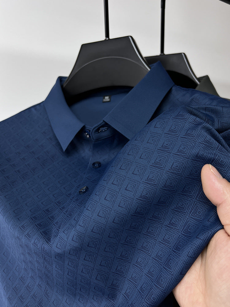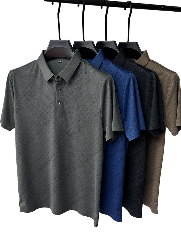 High-end Elegant Ice Silk Short Sleeve T-shirt Men's Lapel Summer Plaid Polo Shirt