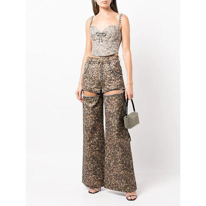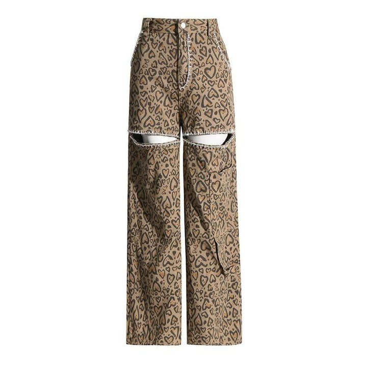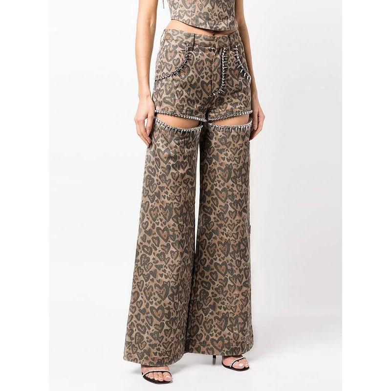 Step into a world of effortless style and unique fashion with our High Waist Patchwork Leopard Denim Trousers. Perfect for those who dare to stand out, these trousers blend the edgy flair of rivets with the wild charm of leopard print, all set against a classic denim backdrop. Designed for women who love to make a statement, these jeans are not just clothing; they're a fashion statement.