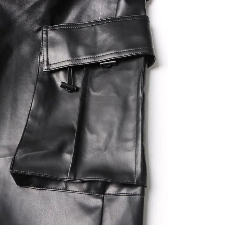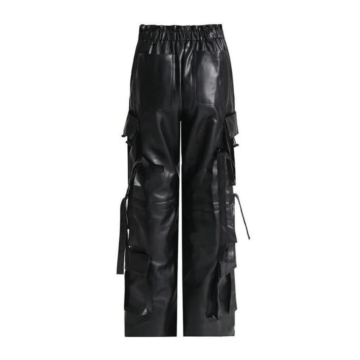 Step into the world of contemporary fashion with our High Waist Solid Patchwork Leather Cargo Pants. Designed for the modern woman, these trousers blend functionality with high-end fashion. Perfect for autumn and winter, they offer a comfortable yet chic addition to your wardrobe.