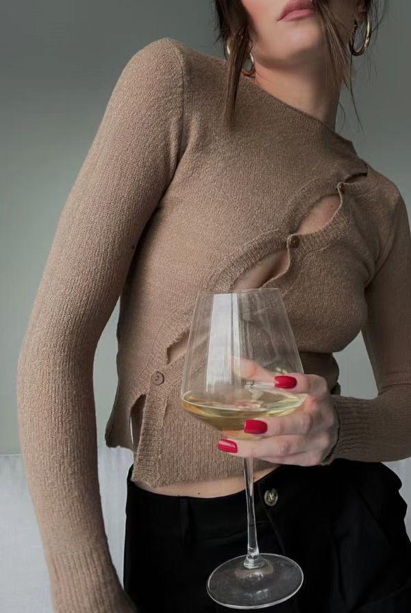 Irregular Round Neck Woolen Long-sleeved Shirt