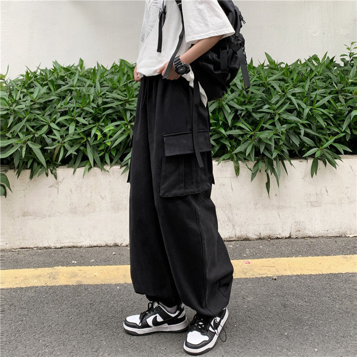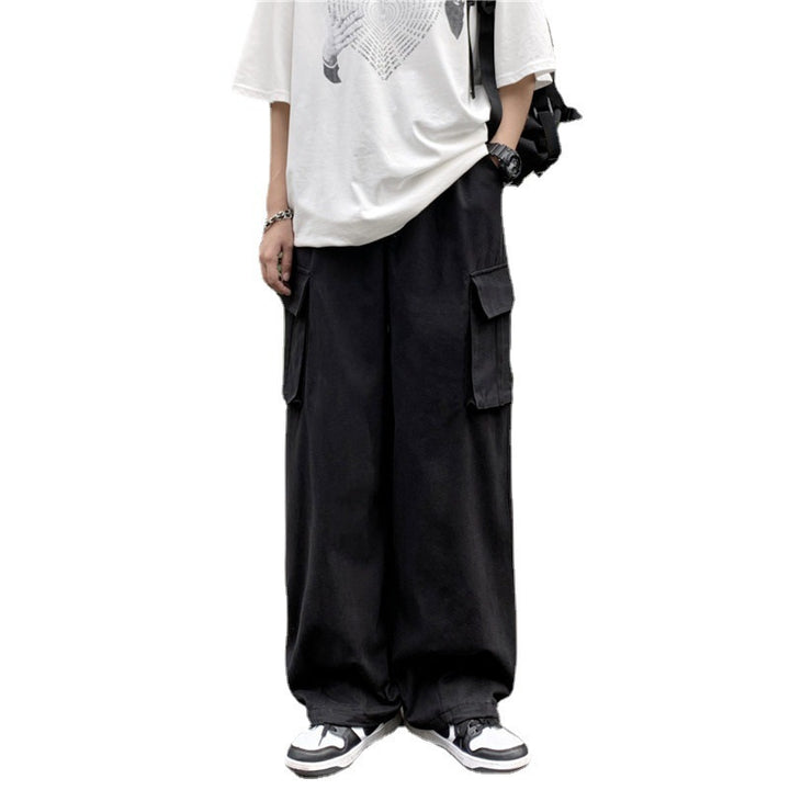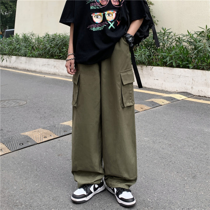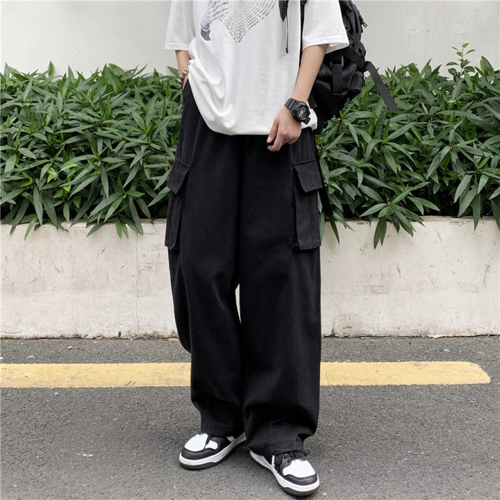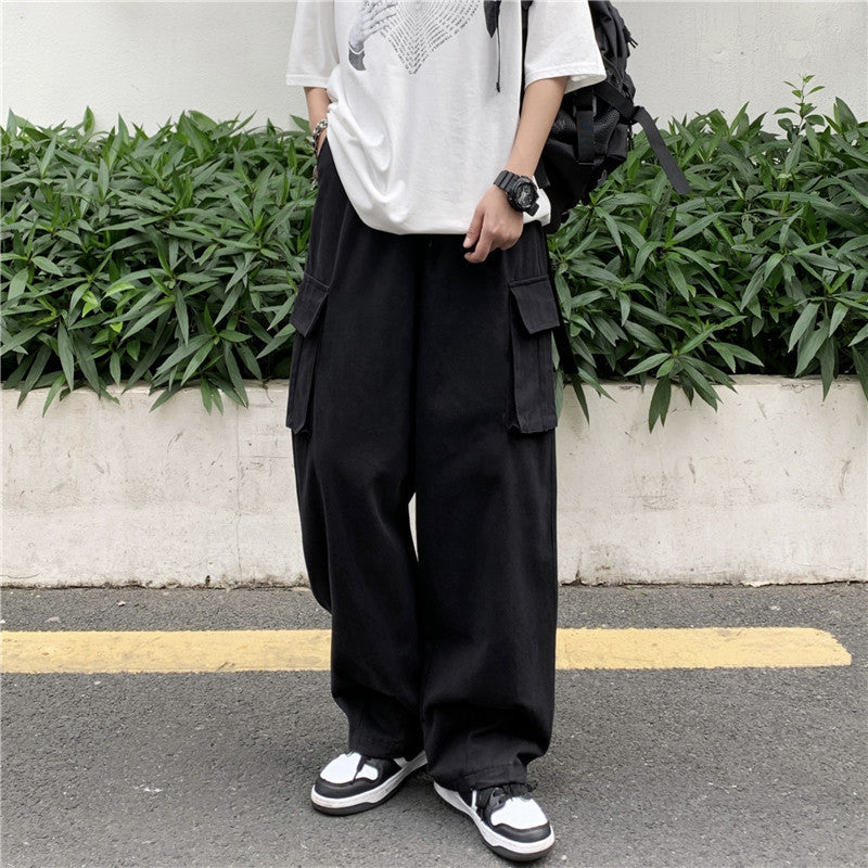 Japanese-style Retro Pants Men's Solid Color Wide Leg Washed Cotton Overalls Straight Loose Casual Trousers