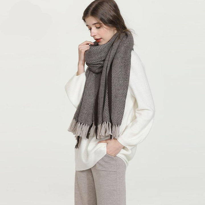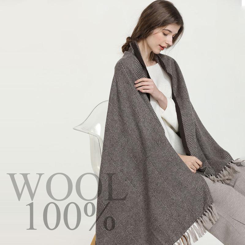 Luxury 100% Wool Plaid Twill Scarf - Coffee Color