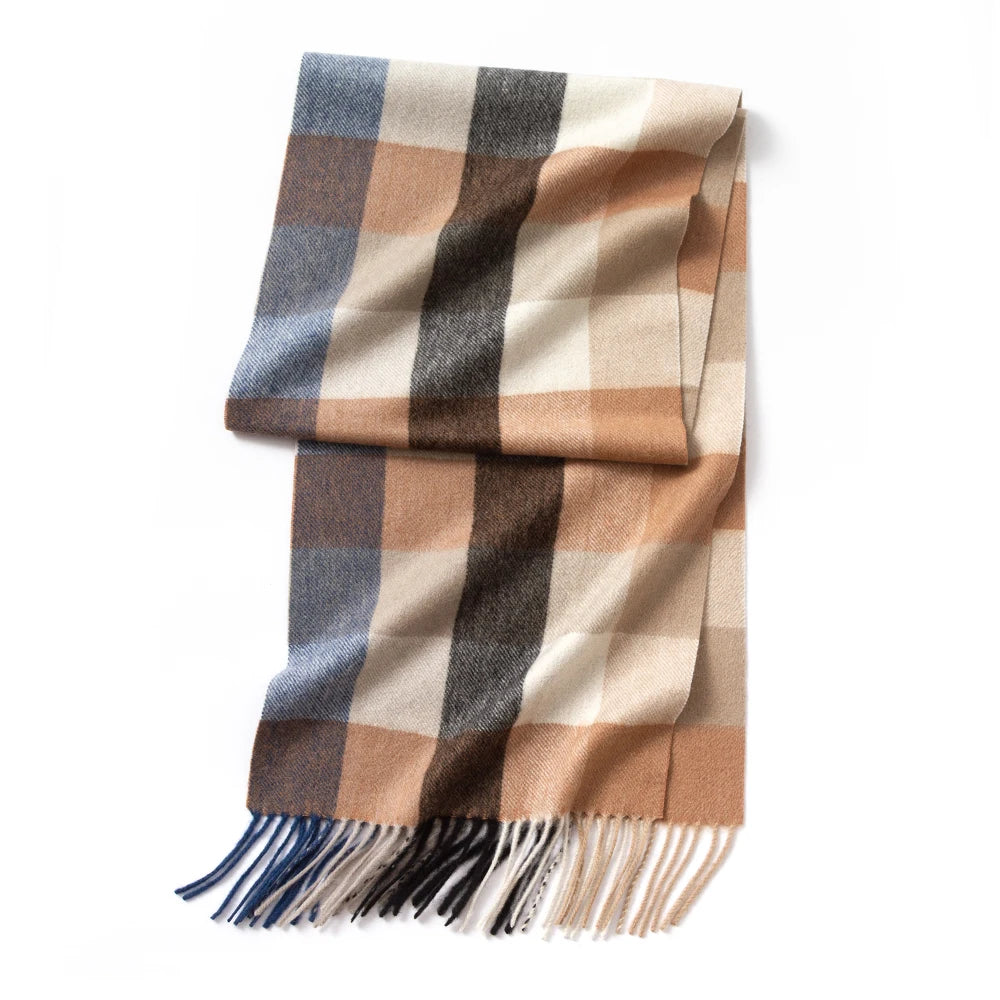What sets this scarf apart is its luxurious cashmere fabric, known for its softness and ability to retain warmth without adding bulk. Unlike ordinary scarves, this one combines comfort with elegance, ensuring you not only feel good but look good too. The rich plaid pattern and tassel details bring a touch of sophistication, making it a must-have for fashion enthusiasts.Elevate Your Style Today