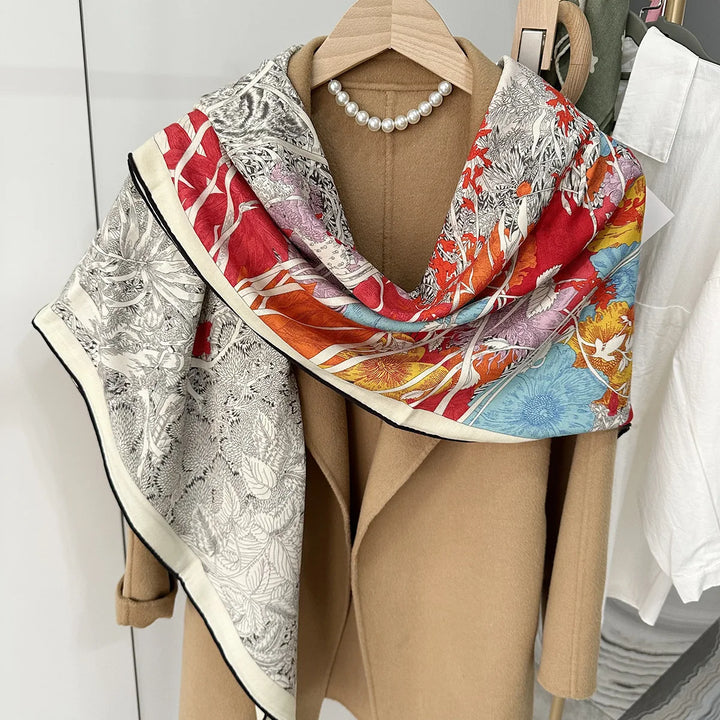Luxury Silk Wool Pashmina Scarf - Elegant Natural Print