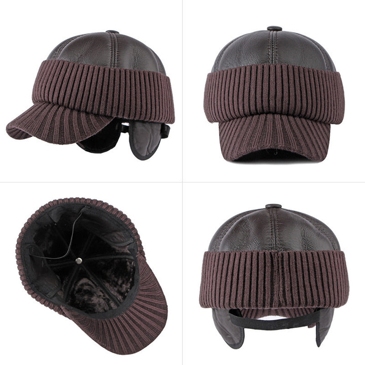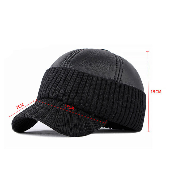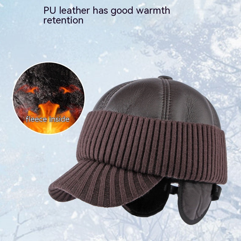 Men's Winter Leather Earflaps Warm PU Thickened Baseball Cap Hat