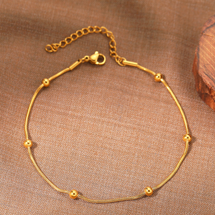 Adorn your ankle with the elegance and sophistication of our Stainless Steel Snake Bead Chain Anklet. Perfect for modern women who cherish a blend of contemporary style and a hint of punk flair, this anklet makes a statement at any occasion, be it a party, wedding, or engagement.
