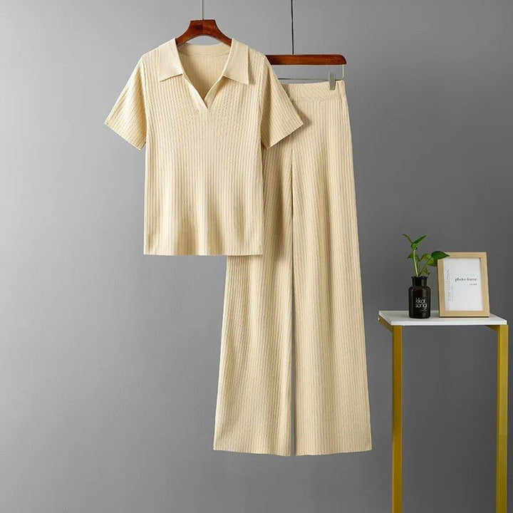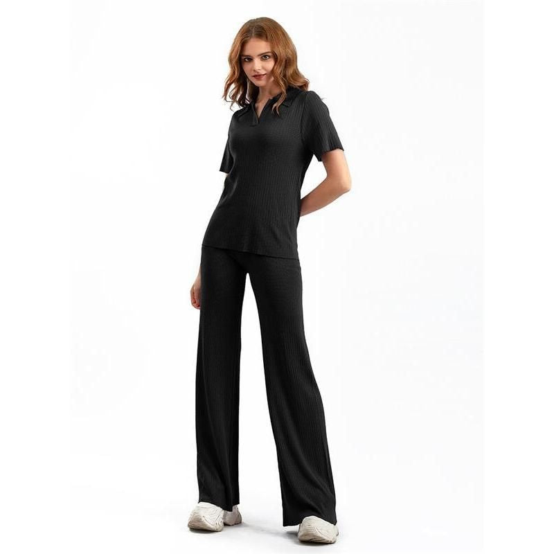 Discover the perfect blend of style and comfort with our Summer Knitted Women's Two-Piece Polo Set. Designed for the modern woman, this chic ensemble features a ribbed V-neck crop top paired with effortlessly stylish wide-leg pants, making it ideal for both spring and summer seasons. Whether you're stepping out for a casual brunch or dressing up for an evening event, this set ensures you look your best while feeling comfortable.