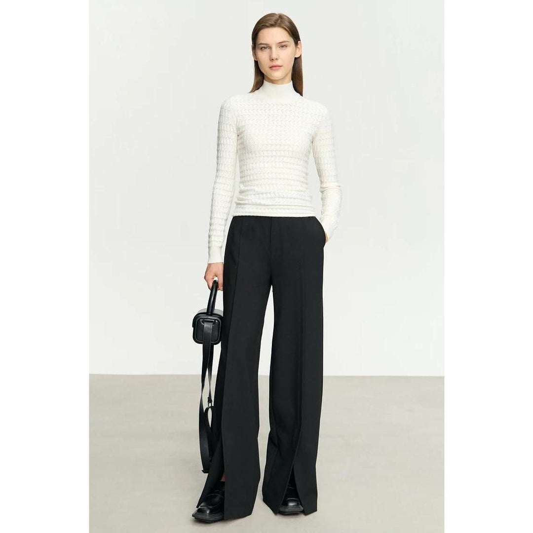What sets these trousers apart is not just their elegant design but their adaptability. The high slit detail adds a touch of drama and sophistication, making them a unique piece in your wardrobe. Their solid color and basic style make them easy to pair with a variety of tops, ensuring you can create multiple looks with just one pair of pants. Plus, the woven fabric type guarantees longevity, making these trousers a valuable investment for your winter collection.