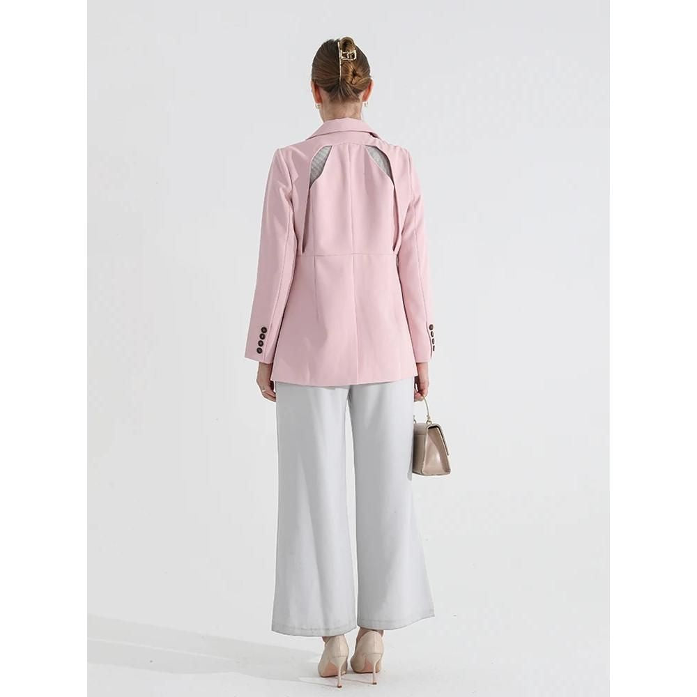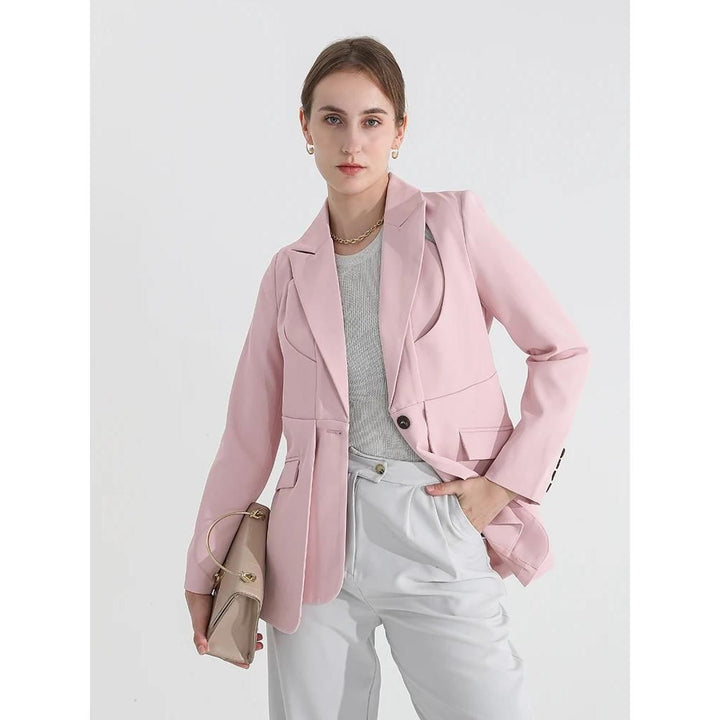 Women's Solid Color Blazer with Notched Collar and Unique Folds